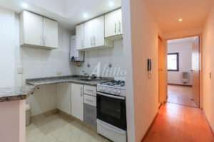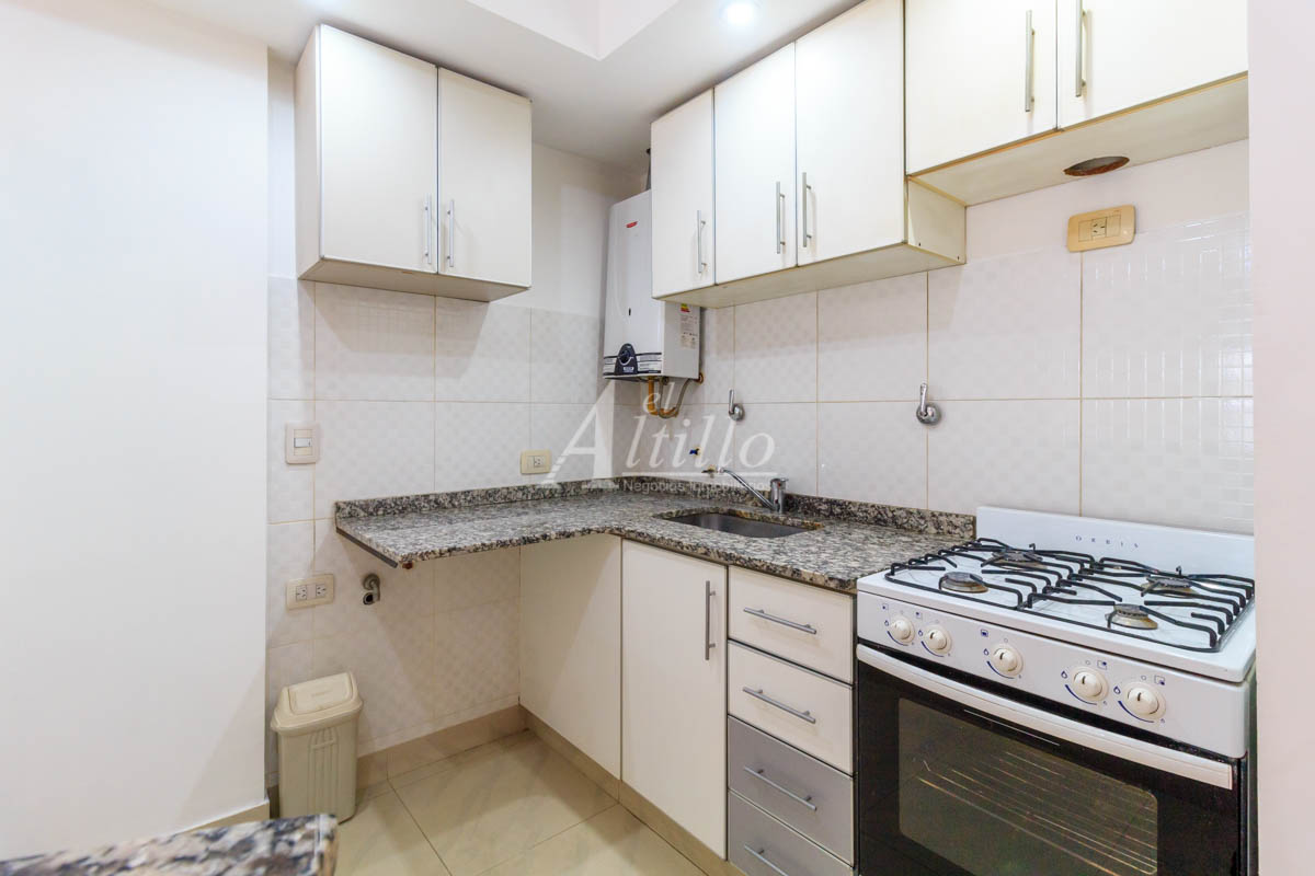 - Living comedor con cocina incorporada con barra desayunador, amoblamiento bajo mesada y alacena.