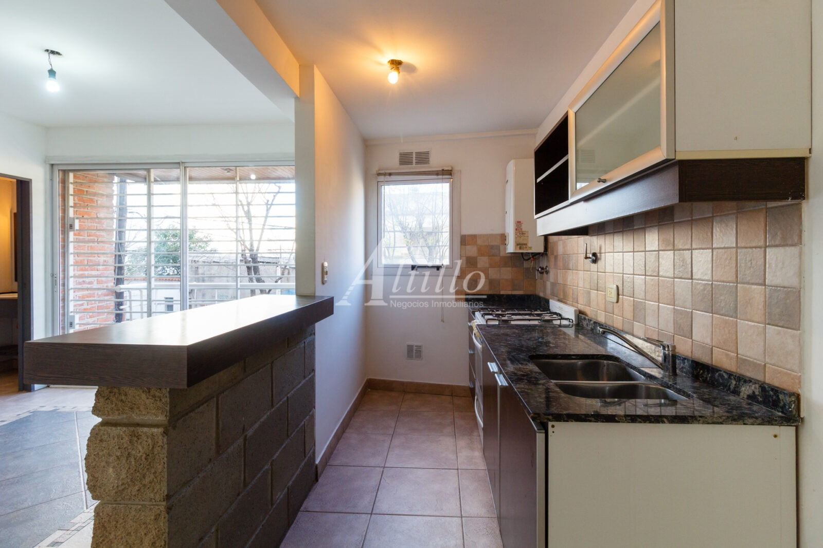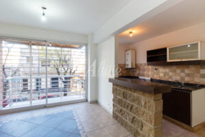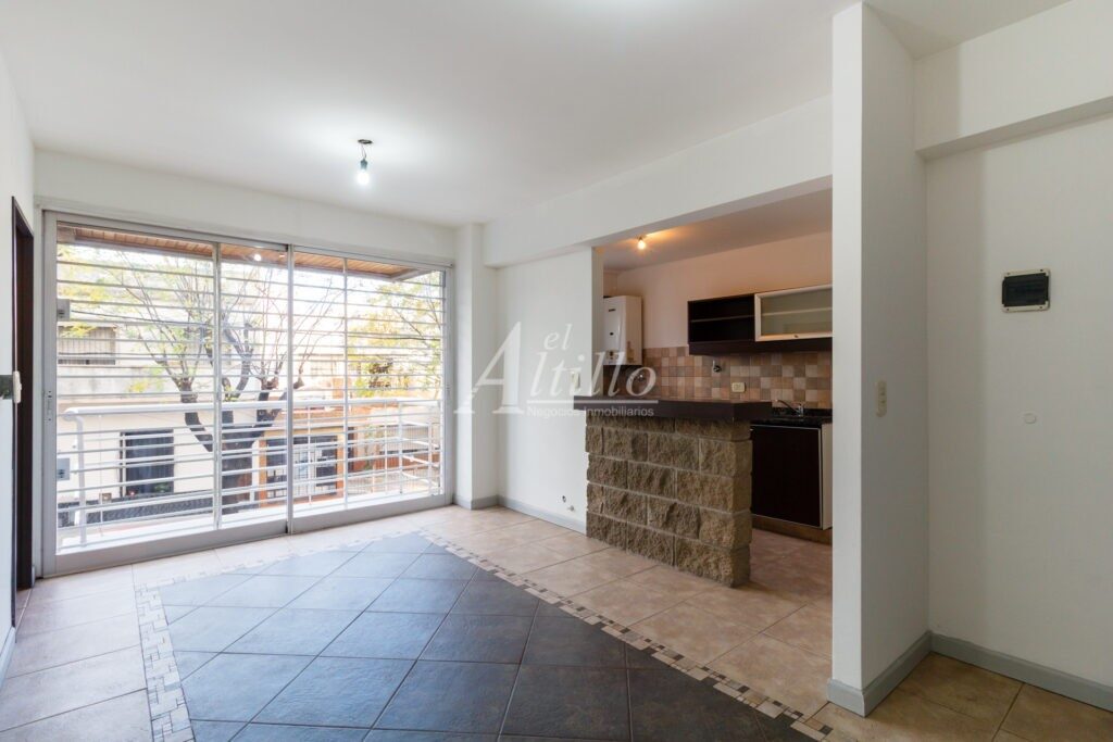 Living comedor con cocina integrada con alacena y bajo mesada